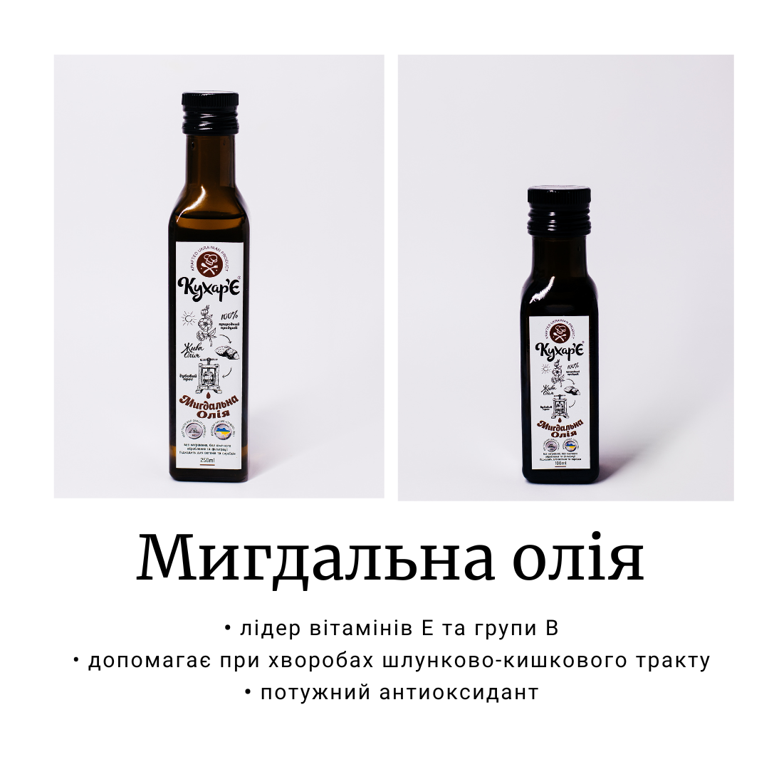 Мигдальна олія містить елемент «молодості» коензим Q10. Тому олія у прямому сенсі є «натуральним кремом», який чудово пом’якшує, зволожує і живить шкіру. Вітаміни А, Е, F, В в її складі відповідають за гладкість і пружність шкіри, силу та блиск волосся, красу і твердість нігтів.