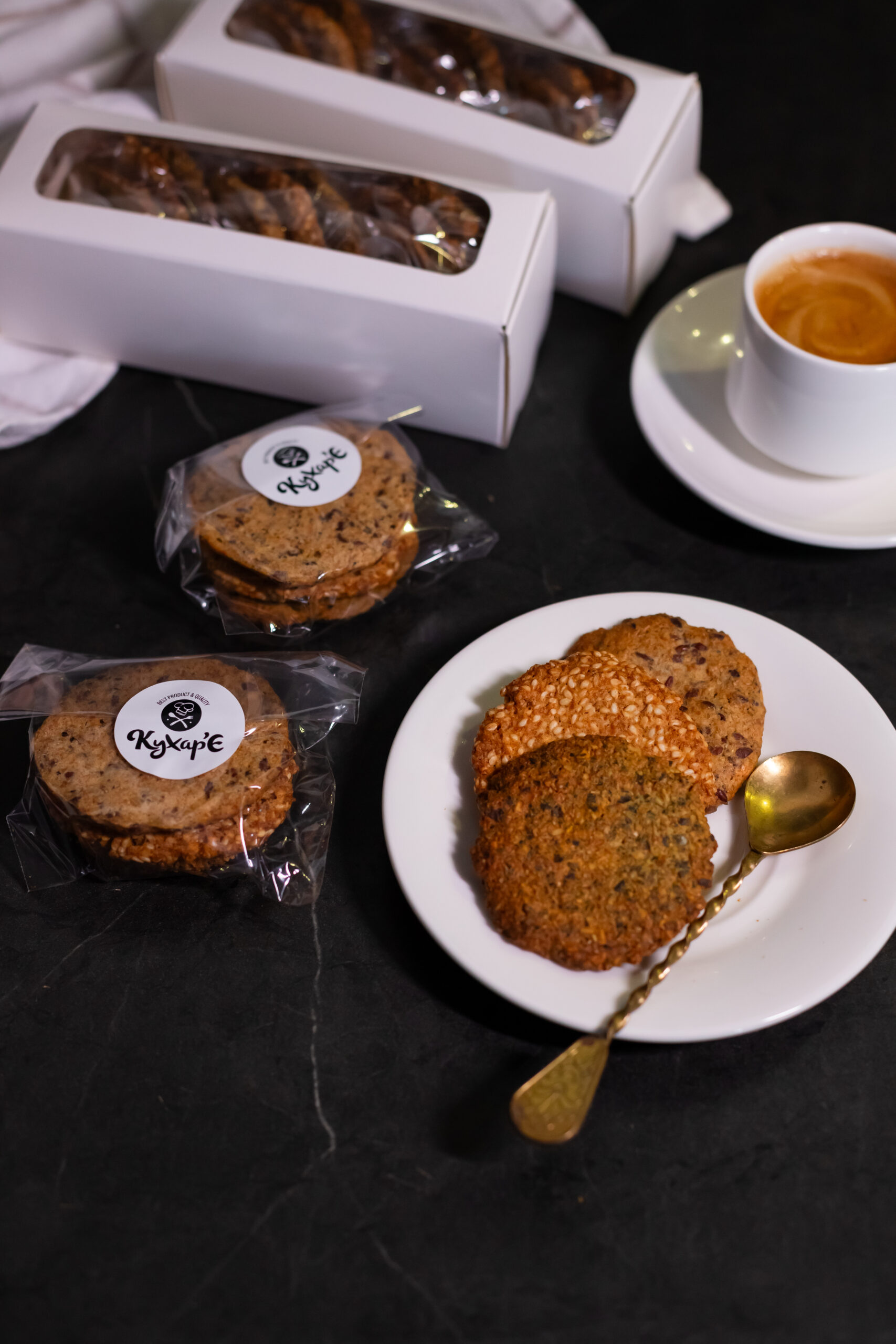 Склад: знежирене насіння (льону/гарбуза/кунжуту), цільнозернове борошно, масло Гхі, цукор, сіль, спеції, розпушувач.